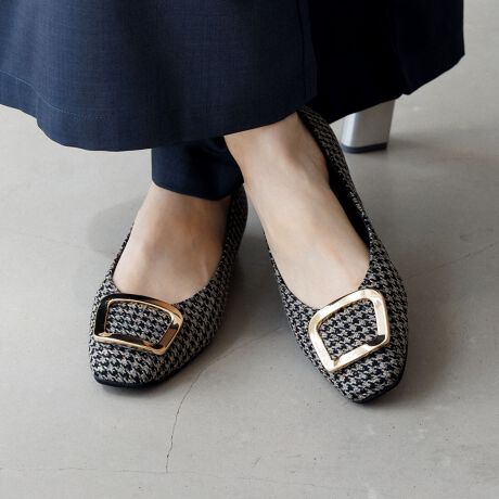 ソフトスクエアトゥで品よく履けるローヒールパンプス。