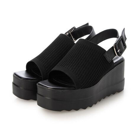 毎年大人気の厚底サンダルに新色のブラックブラックが登場!柔らかく伸縮性のあるニット素材は足当たりが良く、幅広・甲高でお悩みの方でもチャレンジしやすいアイテムです。フック式のバックベルトは着脱が楽ちんで、3段階サイズ調節が出来るのも嬉しいポイント。約7cmの厚底ソールは見た目以上に軽量で、旅行やテーマパークなどのたくさん歩く日にもピッタリ◎ボリューム感がありながらもスッと楽に履けるので、小さいお子様がいるママさんや低身長の方にもおすすめです!
