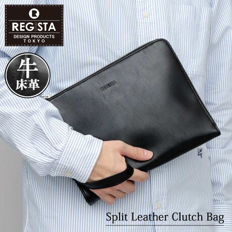 スプリットレザー L字ファスナー クラッチバッグ セカンドバッグ