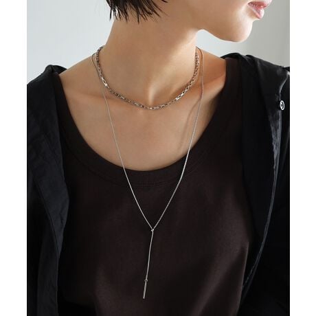 華奢なロングチェーンの先にあしらったバーが、動くたびに揺れ輝くラリエットネックレス。スライドボールで長さやY字のバランスを調整でき、スタイルやシーンに合わせてアレンジを楽しめます。ミニマルなデザインながら、チェーンの上品な輝きが程よい存在感をプラス。単品使いはもちろん、お手持ちのネックレスやチョーカーとの重ね付けもおすすめです。<サージカルステンレスの特徴>・医療器具にも使用される高品質ステンレス・汗や水に強く、サビや変色が起こりにくい・金属アレルギーに配慮した安心素材金属アレルギーの方にも安心してお使いいただける、肌にやさしい素材を使用しています。つけっぱなしでも快適な着け心地で、毎日身につけたくなるような自然な軽さが魅力です。サージカルステンレスは、「医療用にも使われるほど安全な素材」として知られています。汗や水に強く、変色や劣化が起こりにくいため、長く美しい状態を保てるのが特徴です。※金属アレルギーには個人差がございます。すべての方にアレルギー反応が出ないことを保証するものではございません。肌に異常を感じた場合は、すぐにご使用をお控えください。※サージカルステンレスはサビや変色に強い素材ですが、経年変化やご使用状況により、風合いに個体差が生じる場合がございます。あらかじめご了承ください。※撮影時のライティング、ご覧になっているモニター・PC環境により実際の商品と色味が異なって見える場合がございます。ご了承の上お買い求め下さい。