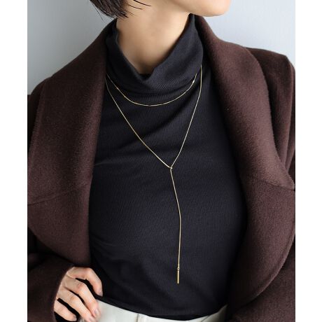 華奢なロングチェーンの先にあしらったバーが、動くたびに揺れ輝くラリエットネックレス。スライドボールで長さやY字のバランスを調整でき、スタイルやシーンに合わせてアレンジを楽しめます。ミニマルなデザインながら、チェーンの上品な輝きが程よい存在感をプラス。単品使いはもちろん、お手持ちのネックレスやチョーカーとの重ね付けもおすすめです。<サージカルステンレスの特徴>・医療器具にも使用される高品質ステンレス・汗や水に強く、サビや変色が起こりにくい・金属アレルギーに配慮した安心素材金属アレルギーの方にも安心してお使いいただける、肌にやさしい素材を使用しています。つけっぱなしでも快適な着け心地で、毎日身につけたくなるような自然な軽さが魅力です。サージカルステンレスは、「医療用にも使われるほど安全な素材」として知られています。汗や水に強く、変色や劣化が起こりにくいため、長く美しい状態を保てるのが特徴です。※金属アレルギーには個人差がございます。すべての方にアレルギー反応が出ないことを保証するものではございません。肌に異常を感じた場合は、すぐにご使用をお控えください。※サージカルステンレスはサビや変色に強い素材ですが、経年変化やご使用状況により、風合いに個体差が生じる場合がございます。あらかじめご了承ください。※撮影時のライティング、ご覧になっているモニター・PC環境により実際の商品と色味が異なって見える場合がございます。ご了承の上お買い求め下さい。