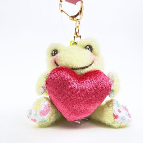 かえるのピクルスのうるうるお目目がキュートな「スマイルハート」シリーズです。胸元のハートのモチーフとハートのチャームがとってもキュートなマスコットです。
