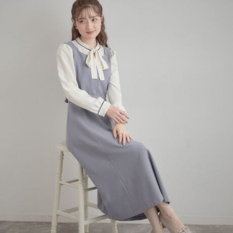 ハートネックの衿元ラインが可愛い、フィット&フレアーシルエットのジャンスカ