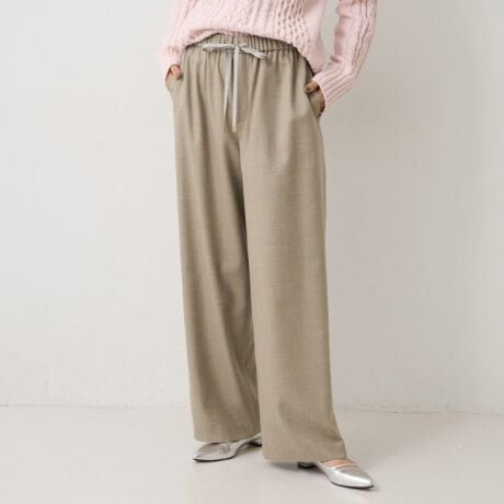 ウエスト部分にドローストリングを採用することで、快適な穿き心地を実現したワイドパンツ。