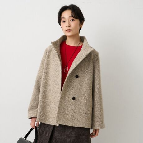 ネップツイード素材のスタンドカラーコート。