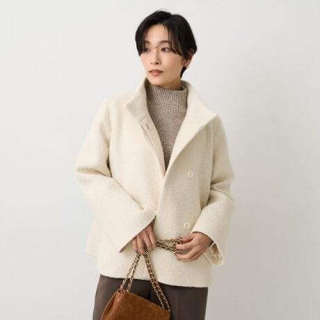 スタンドカラーが首元をすっきりと見せ、シンプルなトップスやニットとも好相性です。