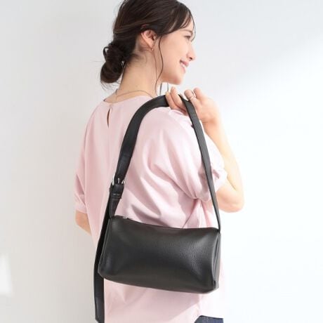 ショルダー紐の長さを調節して斜め掛けや肩掛けにできるショルダーバッグです。