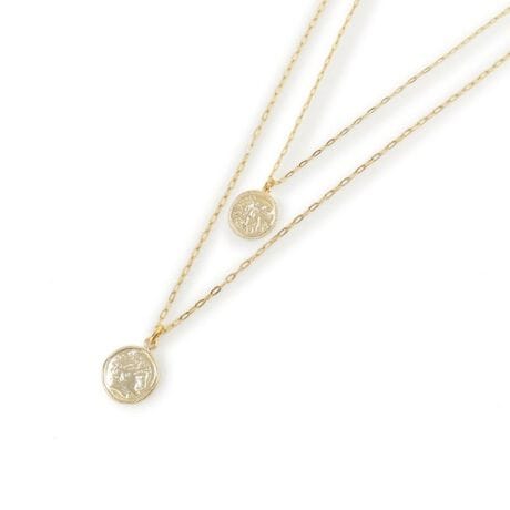 胸元でさらりと揺れるコインモチーフの2連ネックレスです。