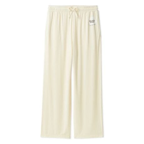 するんとなめらかな肌触りが心地良いレーヨンのカットソーに、HOMMEベアやジェラートのグラフィックをデザインしたシリーズです。左腰にふわふわのジェラートをプリントした、落ち感がきれいなストレートシルエットのロングパンツ。ジェラートBOXに飛び込むベアをプリントしたロンTと連動したアイテムで、腰元の絵柄は“ベアが飛び込んで箱から出てしまったジェラート”をイメージしてデザインしています。両脇と右後ろにポケット付き。色はクリームとダークグレーの2色をご用意しました。同シリーズのロンTや、ベア柄アンダーウェアとセットにしてギフトにもおすすめのアイテムです。