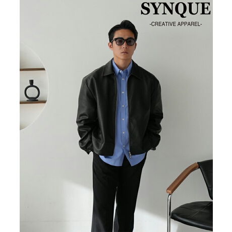 フロントは使い勝手の良いジップ仕様、程よいゆとりのレギュラーフィットで仕上げたPUレザージャケット。