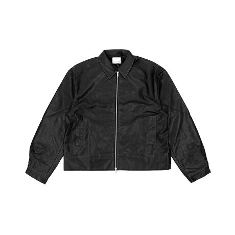 フロントは使い勝手の良いジップ仕様、程よいゆとりのレギュラーフィットで仕上げたPUレザージャケット。