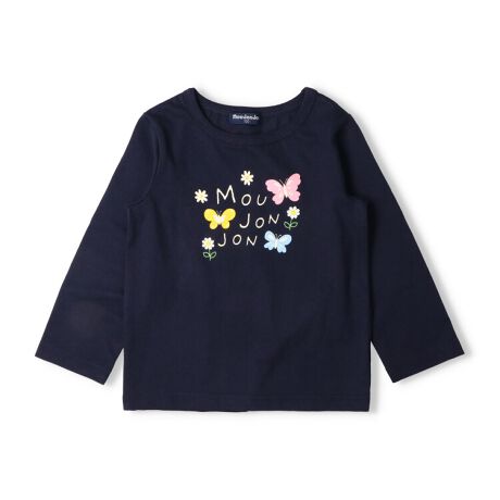 春らしい蝶々をモチーフにしたプリント入りの長袖Tシャツ、ロンT。ピンクとネイビーでプリントが異なります。綿100%でデイリー使いにオススメなアイテム。【アイテム】トップス シンプル ガーリー フェミニン カジュアル お洒落 オシャレ かわいい 可愛い 普段着 デイリーウェア お出かけ着 お外着 お外遊び着 子ども こども 女児 女の子 ガールズ キッズ ベビーサイズ トドラーサイズ 幼稚園 保育園 小学校 通園 通学 小学生 2026年春物新作 丸高衣料 ロングスリーブ 長袖 ちょうちょ 紺色 ムージョンジョン