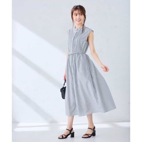 上品な印象のフレアシルエットに、胸元のピンタックがアクセントのシャツワンピースです。