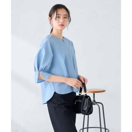 季節の変わり目にちょうど良い五分袖もポイントのブラウスです。