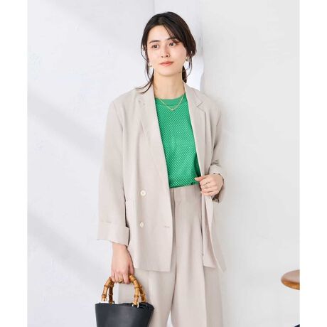 清涼感のあるリネンライクな素材のダブルブレストジャケット。