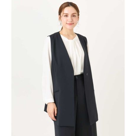 スッキリVネックあきの着回し力のあるシンプルジレ。