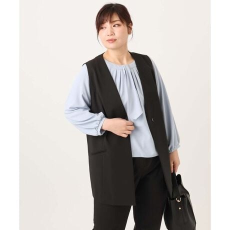 スッキリVネックあきの着回し力のあるシンプルジレ。