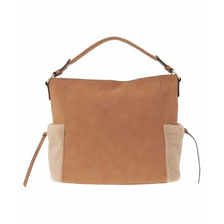 シーズナルスタイルにぴったりの、フェイクファーポケットをポイントにしたデザインバッグです。
