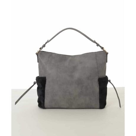 シーズナルスタイルにぴったりの、フェイクファーポケットをポイントにしたデザインバッグです。