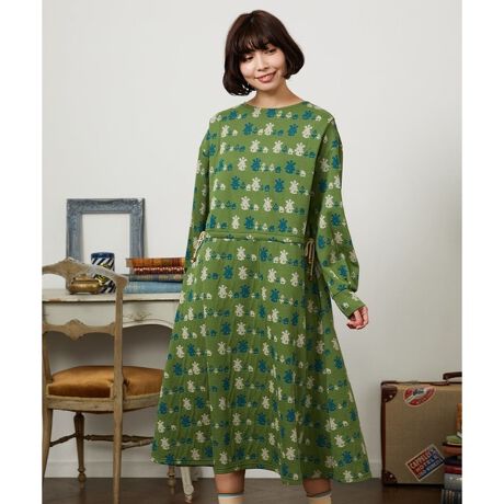 柄が主役のワンピース。着心地抜群なので日常使いにもオススメです。春は一枚で楽しめるのはもちろん、季節の変わり目にはハイネックのインナーの上に重ねたり、カーディガンやコートを羽織ると長く着用いただけます。