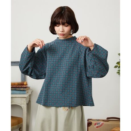 デイリー使いしやすいジャカード織りの総柄カットソープルオーバー。袖周りにたっぷりとゆとりを持たせたラグランスリーブが快適な着用感を叶えます。袖口にタックを入れこみ、丸みを持たせた袖のデザインにも注目です。やや浮きのあるスタンドカラーが顔周りのすっきり見えと上品な印象をプラス。季節の変わり目に重宝する、ワードローブに揃えておきたいひと品です。