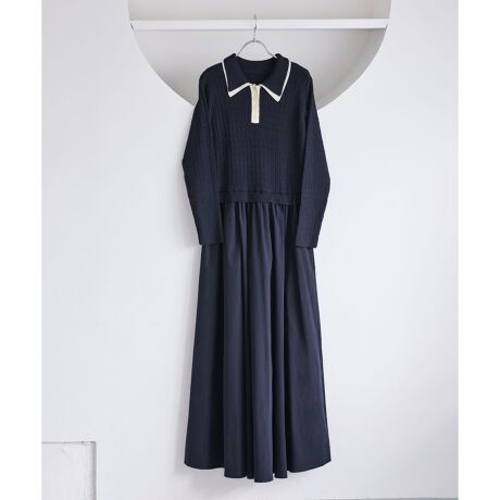 コンパクトなトップスに裾がふんわりと広がったスカートでメリハリのあるシルエット。トップス部分は細いケーブル編み。襟周りはダブルカラーと配色使いでトレンド感のある1枚。お出かけや通勤にも着回し可能。着るだけでこなれ感のあるスタイリングが完成します!