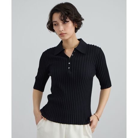 程よくタイトフィットなワイドリブのハーフスリーブポロシャツ。