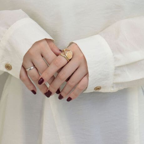 ・やさしい色合いのストーンが指先にさりげない華やかさを添えます