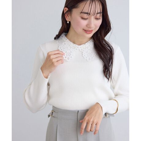 ・別素材のレース衿をあしらった、1枚で存在感のあるデザイン。