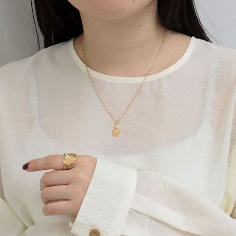 ・細身のチェーンが上品に馴染み、女性らしい印象に