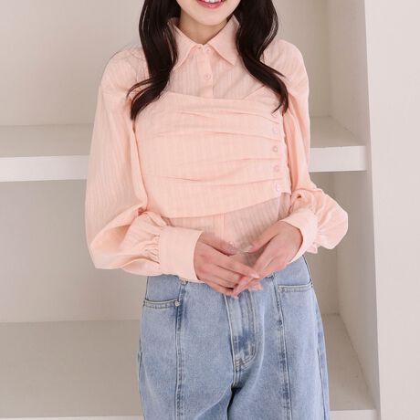 ・ビスチェは片側ボタン仕様で、タックが寄るデザインがアクセントに