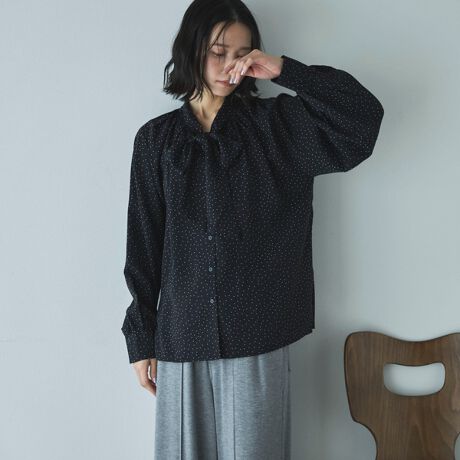 ・肩のギャザーとボリューム感のある袖がゆとりのあるシルエットに