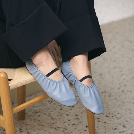 馴染みのある柔らかな合成皮革を使用した新型バレエシューズ。