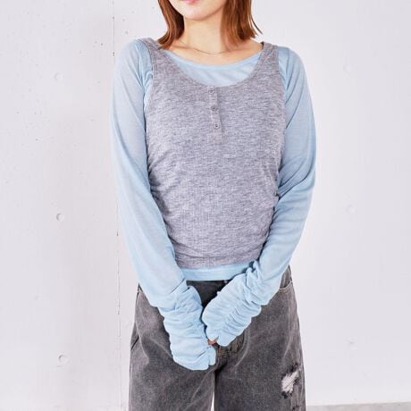 ・長袖カットソー×タンクのレイヤードセット