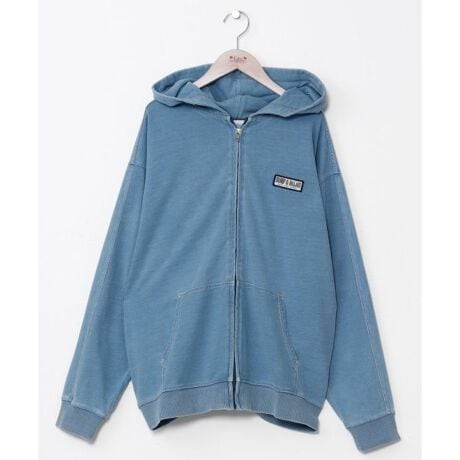 [型番:47U-6104-2025]デニム風裏毛とデニムの切り替えデザインがスタイリッシュなメンズジップパーカー。背中のパッチ刺しゅうとプリントが存在感を演出。肌寒い時期の羽織りとしても活躍し、ハーフパンツやパンツとのセットアップコーデもおすすめです。