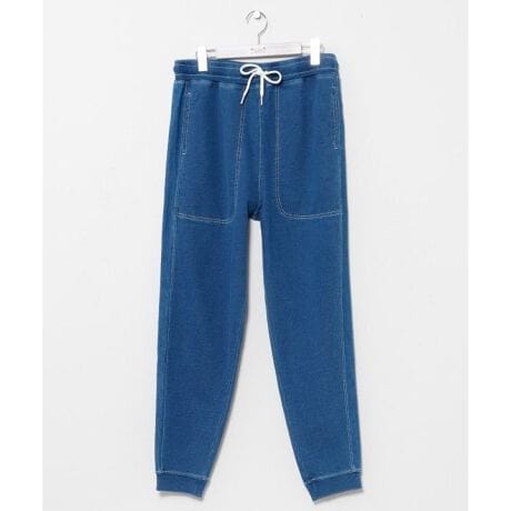 [型番:47U-6105-2025]デニム風裏毛とデニムの切り替えデザインを取り入れたメンズパンツ。後ろポケットに施されたプリントがアクセント。トップスやジップパーカーとのセットアップコーデもおすすめです。