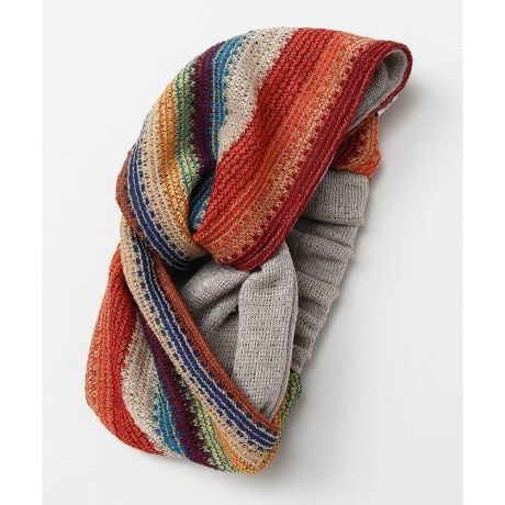 柔らかな無地、柄生地を組み合わせたデザインのヘアバンド。エスニックテイストのストライプ柄がポイントに。伸縮性のあるゴムで快適なつけ心地です。