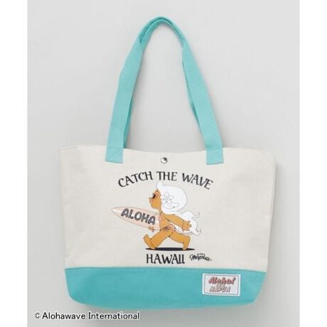 [型番:46IP6101-2025]【Kahiko×Aloha Mapua】サーフィンとファッションをこよなく愛するキャラクター「Aloha Mapua(アロハマプア)」の世界観が詰まったトートバッグ。ハワイの海と太陽を感じる明るいプリントがポイント。マチ付きで収納力があり、デイリー使いからおでかけまで幅広く活躍。軽やかな綿素材で持ち心地も快適。