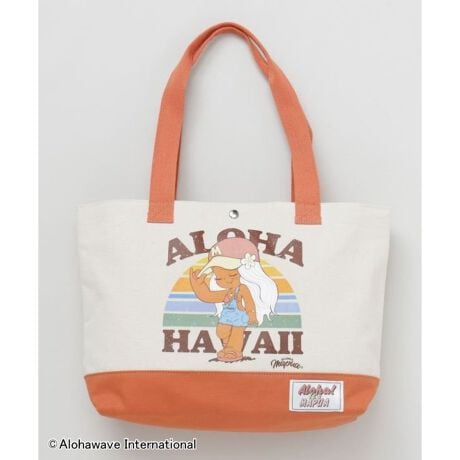 [型番:46IP6101-2025]【Kahiko×Aloha Mapua】サーフィンとファッションをこよなく愛するキャラクター「Aloha Mapua(アロハマプア)」の世界観が詰まったトートバッグ。ハワイの海と太陽を感じる明るいプリントがポイント。マチ付きで収納力があり、デイリー使いからおでかけまで幅広く活躍。軽やかな綿素材で持ち心地も快適。