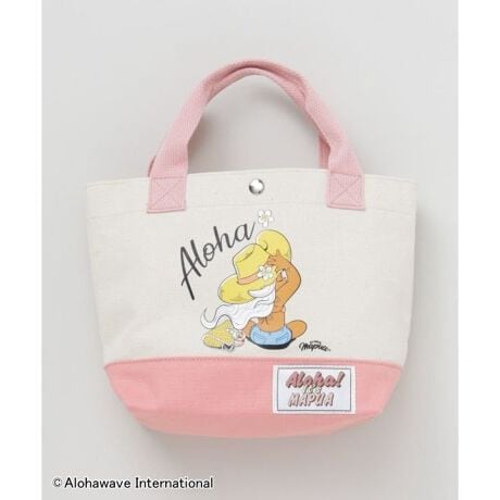 [型番:46IP6102-2025]【Kahiko×Aloha Mapua】サーフィンとファッションをこよなく愛するキャラクター「Aloha Mapua(アロハマプア)」の世界観が詰まったミニトート。ちょっとしたお出かけやランチバッグに最適なサイズ感。ハワイの陽気な雰囲気を感じるデザインで、持つだけで心も軽やかに。ナチュラルな綿素材が魅力。