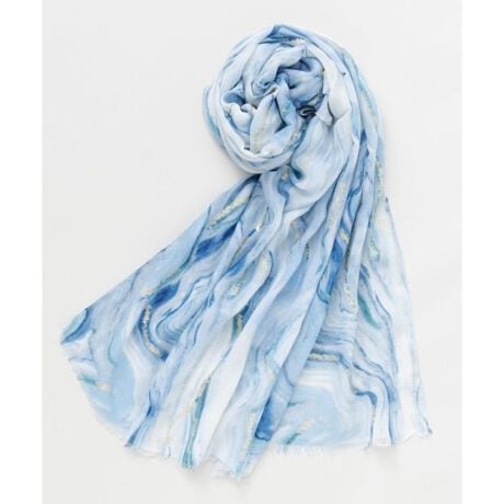 [型番:7CSP6102-2025]水面に映る光の揺らめきを思わせるマーブル模様が印象的な大判ストール。繊細な色の重なりとほのかな光沢が、巻くだけで上品な表情を演出します。軽やかな素材で肌なじみも良く、日よけや冷房対策にも最適。コーディネートに洗練されたアクセントを添える一枚です。