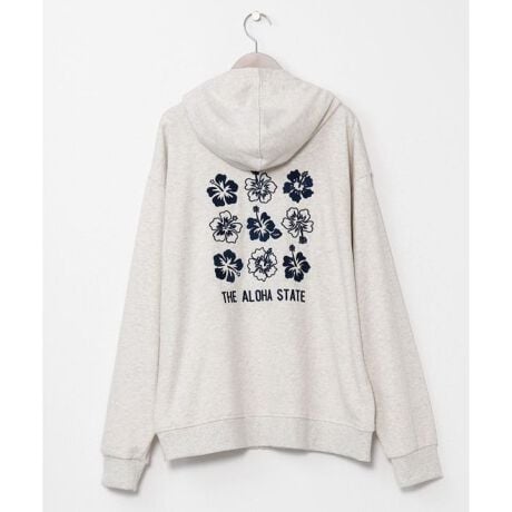 裏毛素材を使用したメンズフード付きトップス。やわらかな肌触りで着心地が良く、前後に施された刺しゅうがさりげないアクセント。カジュアルながらも上品さを感じる一枚です。