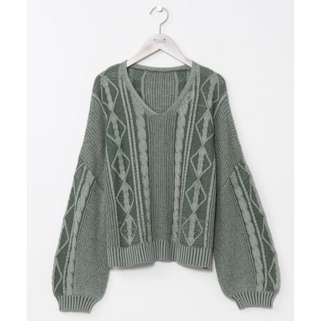 [型番:46B-6103-2025]洗い加工風に編みたてたコットンニットトップス。胸元の「ALOHA」の刺しゅうがポイントです。短めの丈とボリュームのある袖が軽やかな印象を与え、バランスよくスタイルアップを叶えます。