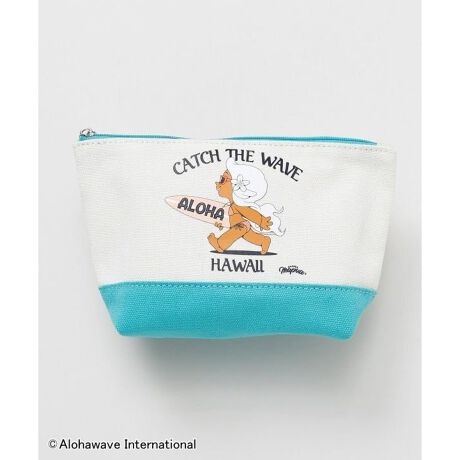 [型番:46IP6103-2025]【Kahiko×Aloha Mapua】サーフィンとファッションをこよなく愛するキャラクター「Aloha Mapua(アロハマプア)」が描かれたポーチ。手のひらサイズながらマチ付きで収納力抜群。コスメや小物入れにぴったりで、バッグの中でも存在感のあるかわいらしいアイテム。