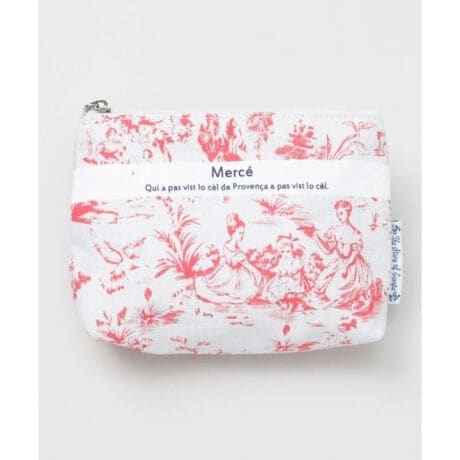[型番:LIKP6102-2025]18世紀後半フランス郊外のジュイ地方で生産されたトワルドジュイをイメージした、フランスのことわざが添えられたミニポーチ。ゴールドのファスナースライダーが上品なアクセントに。バッグの中の整理にも活躍。オーガニックコットンを使用。