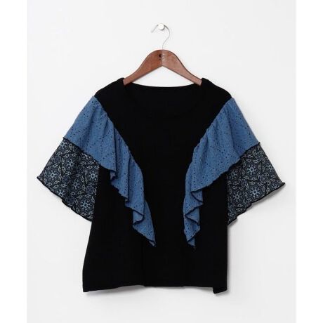 [型番:CCP-6101-2025]ショート丈とフリルがポイントの切替トップス。スタイルアップ効果のある個性的なデザイン。カジュアルなのにフェミニンな印象を演出。