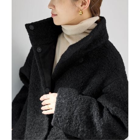 表情豊かなループインレイ素材を使用した、軽やかで温かみのあるハーフ丈コート。