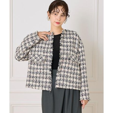 ■デザインきゅっと詰まったネックラインで顔まわりはすっきりとし、ゆとりのあるボディとドロップショルダーでリラックス感のあるバランスに。ポケットの、フリンジディテールが上品なアクセントに。前端に使用したグログランテープがシャープなアクセントになっています。エレガントスタイルだけでなく、カジュアルダウンした着こなしもおすすめ。コーディネートを華やかに彩ってくれる、大人のための上質なジャケットアイテムです。《LINTON/リントン》LINTON社は1900年代初頭に英国カンブリア地方で創業しました。100年以上にわたり、名だたるブランドに独自のTWEEDを届けてきた存在です。最大の特徴は、糸から自社で開発していること。ルレックスやペーパーヤーン、ポンポンヤーンなど、一見異素材と思える糸を大胆に掛け合わせ、織りで新しい景色を生み出します。・裏地あり・ポケットあり■下げ札サイズ表記4=(13号)■サンプル撮影商品画像の商品はサンプルです。実際の商品とはサイズや色味、素材、デザイン等の仕様が若干変更になる場合がございます。■カラーについては、可能な限り実際の商品に近いカラーで撮影をおこなっておりますが、照明の関係により実際の製品とは色味が違って見える場合があります。またパソコン・スマートフォンなどの環境により、若干製品と画像のカラーが異なる場合もございます。現物と画像のカラー差異については返品理由となりませんので、予めご了承ください。■サイズ表記はあくまで目安となります。