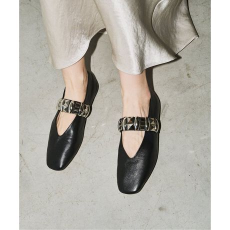 1つ1つ丁寧にスタッズを打ち込みボリュームを出したストラップがポイントのメリージェーン。