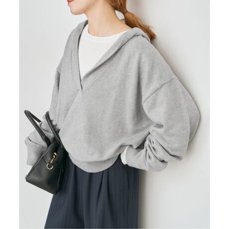 深く開いた前立ては、パーカーでありながらも女性らしく、抜け感のある印象に。